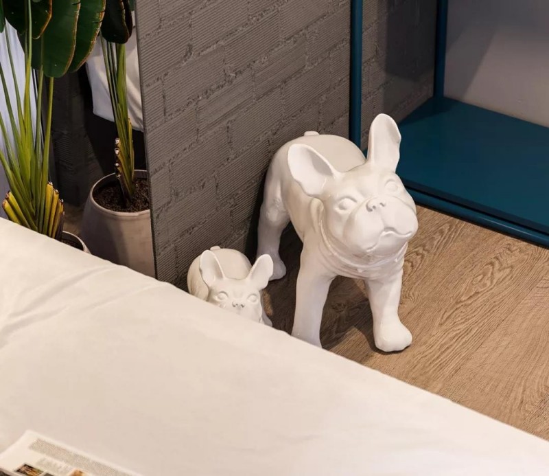客厅没有安装电视 只留了一面白墙做投影的幕布 保证了基本娱乐 也不占用地面空间