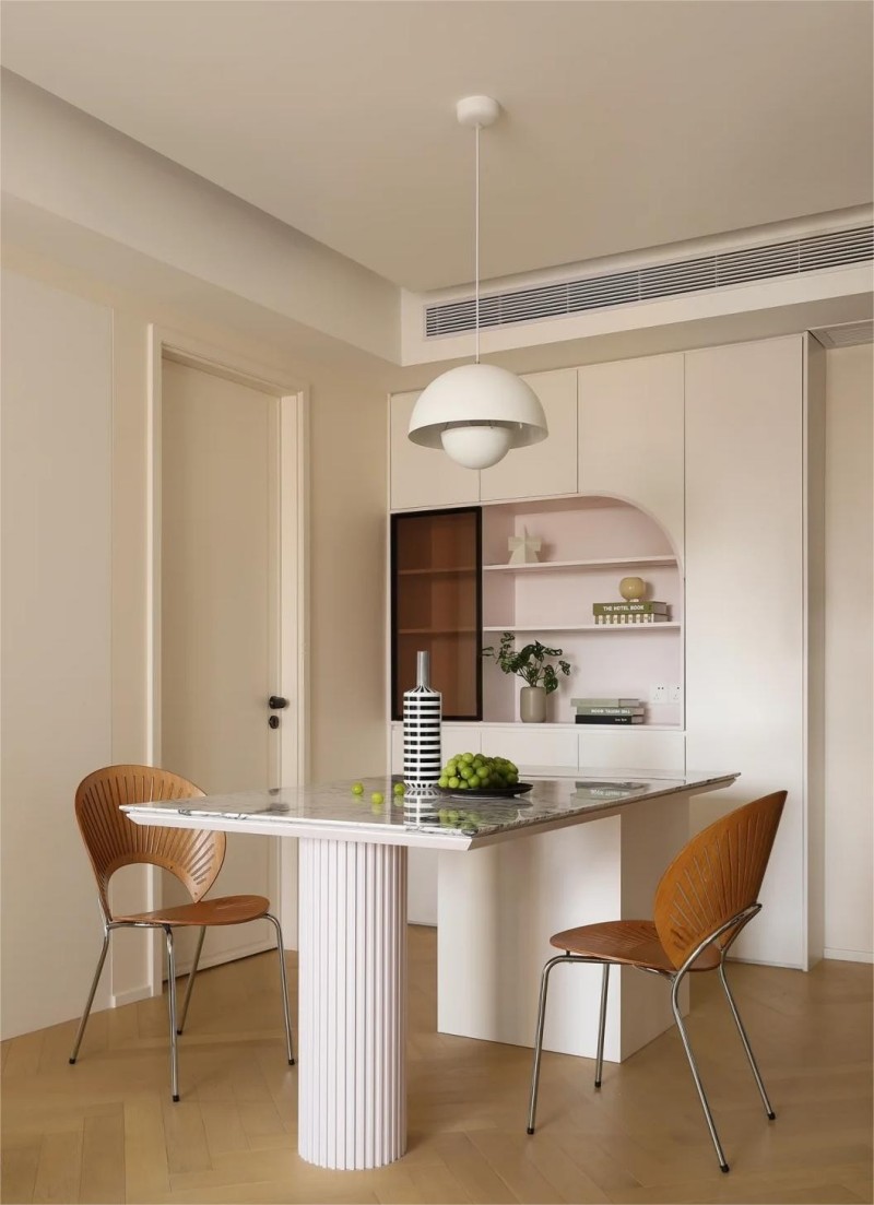 咖色作为空间的主色,奠定暖色基调 绿色的葡萄,简直是灵魂点缀ya~