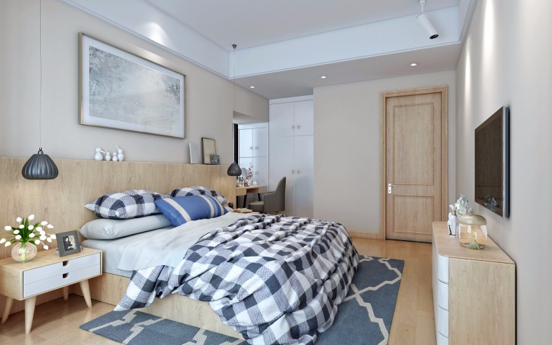 床头木饰面板造型,简单不占空间