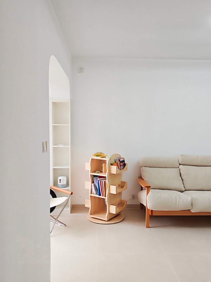 阳台面积不大,打造封闭式通客厅,给阳台做了一个拱形门简单又符合主题.