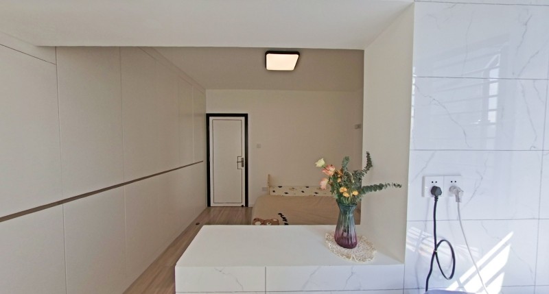 42平方的户型,要如何利用好空间 1.厨房打造一个开放式的空间,在入户门做一个小鞋柜,不仅可以收纳也可以在厨房添加一定隐私. 2.客厅去掉客厅打造一个实木的榻榻米,还可以收纳一些不常用的物品 3.利用好墙面,可以打造墙面柜,可以收纳一切.