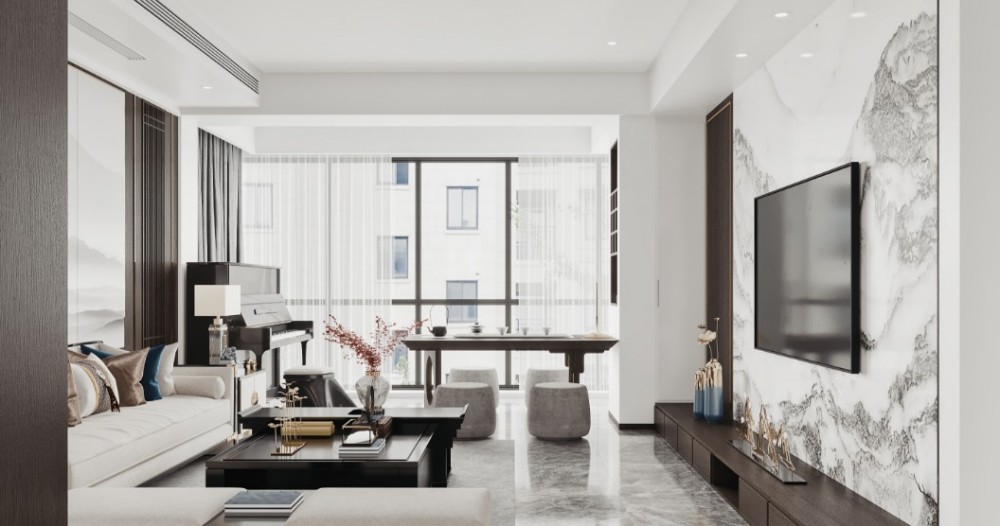 光透过窗帘,自由地在客厅里延展,赋予环境悠远自在的意境。