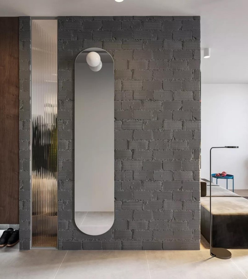 椭圆形穿衣镜、球形壁灯 整合在一起 经过镜面反射的灯光 让玄关看起来更加明亮