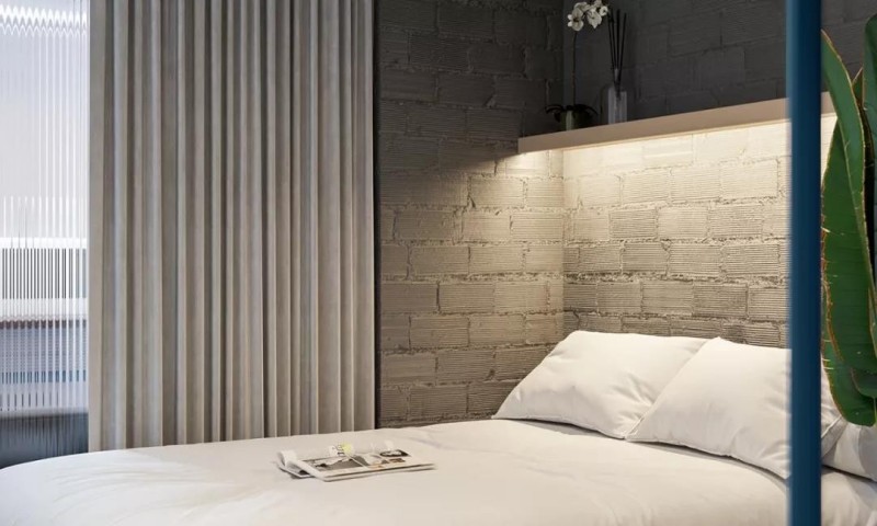 卧室在客厅后方 因为布局的关系采光并不是很好 所以设计师利用长虹玻璃做隔断墙 将自然光引入室内