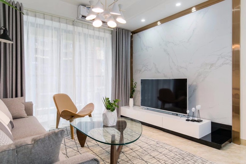 整个色调温馨,不压抑,简单大理石背景墙