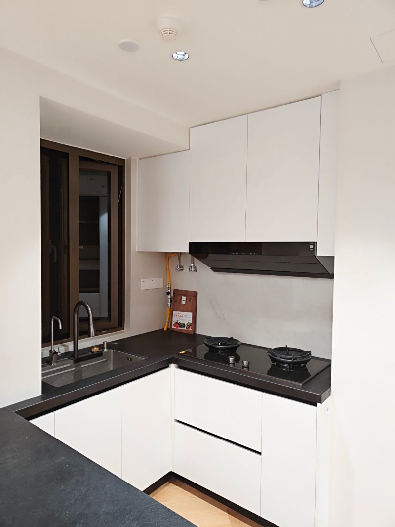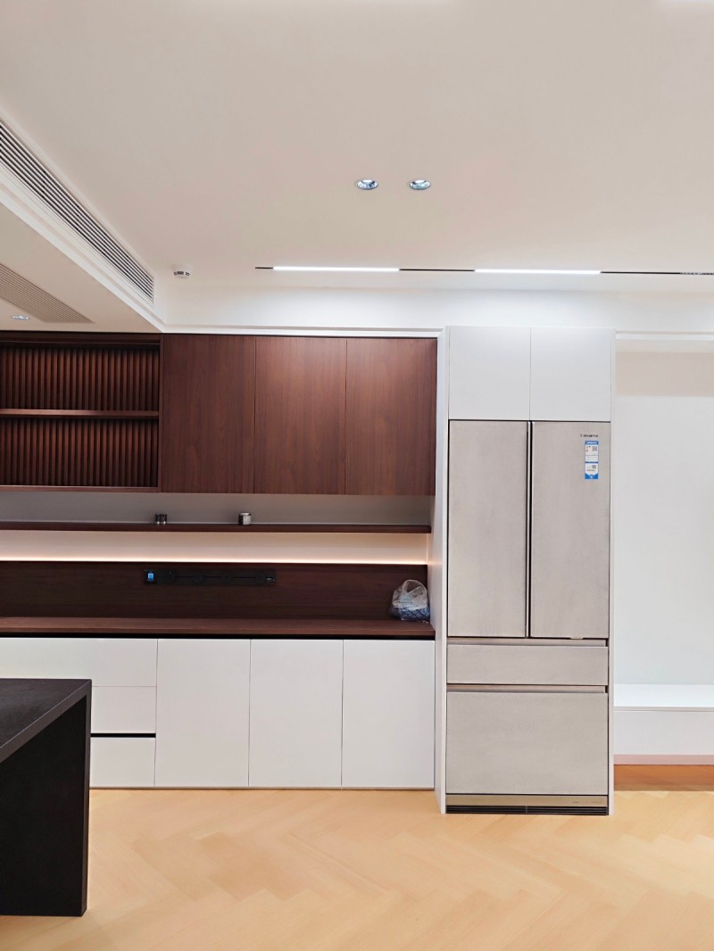 开放式厨房增加了空间感和互动性,而吧台功能则提供了一个舒适的用餐区域。台面可以增加温暖和自然的感觉,同时电器配置的全面也可以提高厨房的实用性.