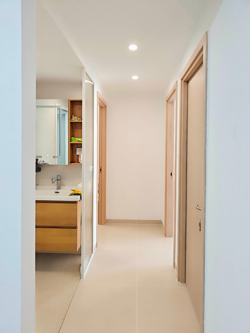 开放式布局,门洞串联功能区 无主灯+哑光瓷砖通铺 背景墙适当的留白处理.