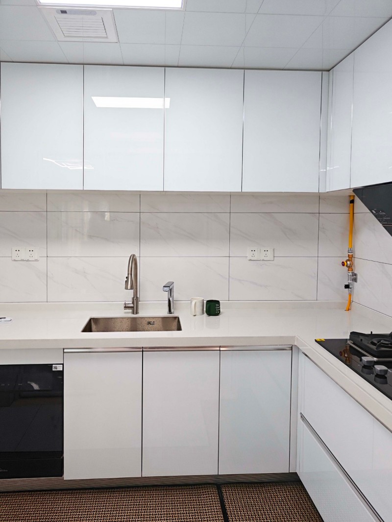柜子用高光柜门好打理油腻腻的柜子,柜子一定要做到顶好收拾卫生,制定一个详细的收纳计划,将食材、碗盘、调料等物品放置得有序又方便取用。合理规划厨房空间,善用墙面、角落等,制作出巧妙的储物空间,避免杂乱无章的状况.