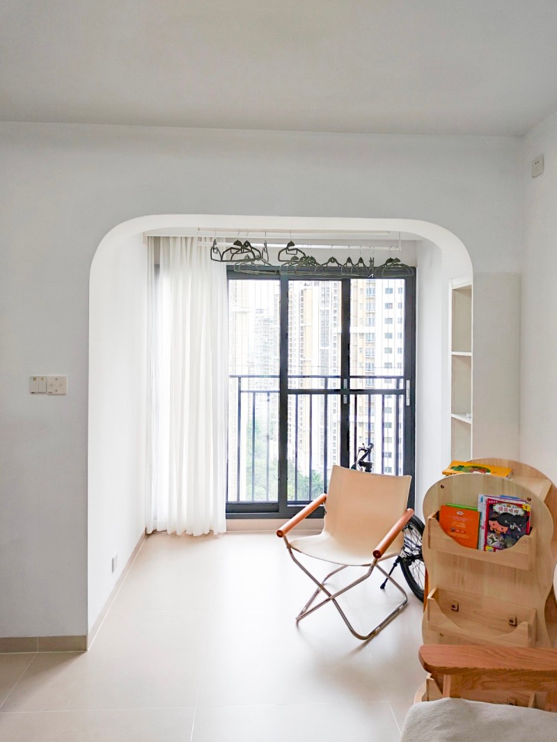 阳台面积不大,打造封闭式通客厅,给阳台做了一个拱形门简单又符合主题.
